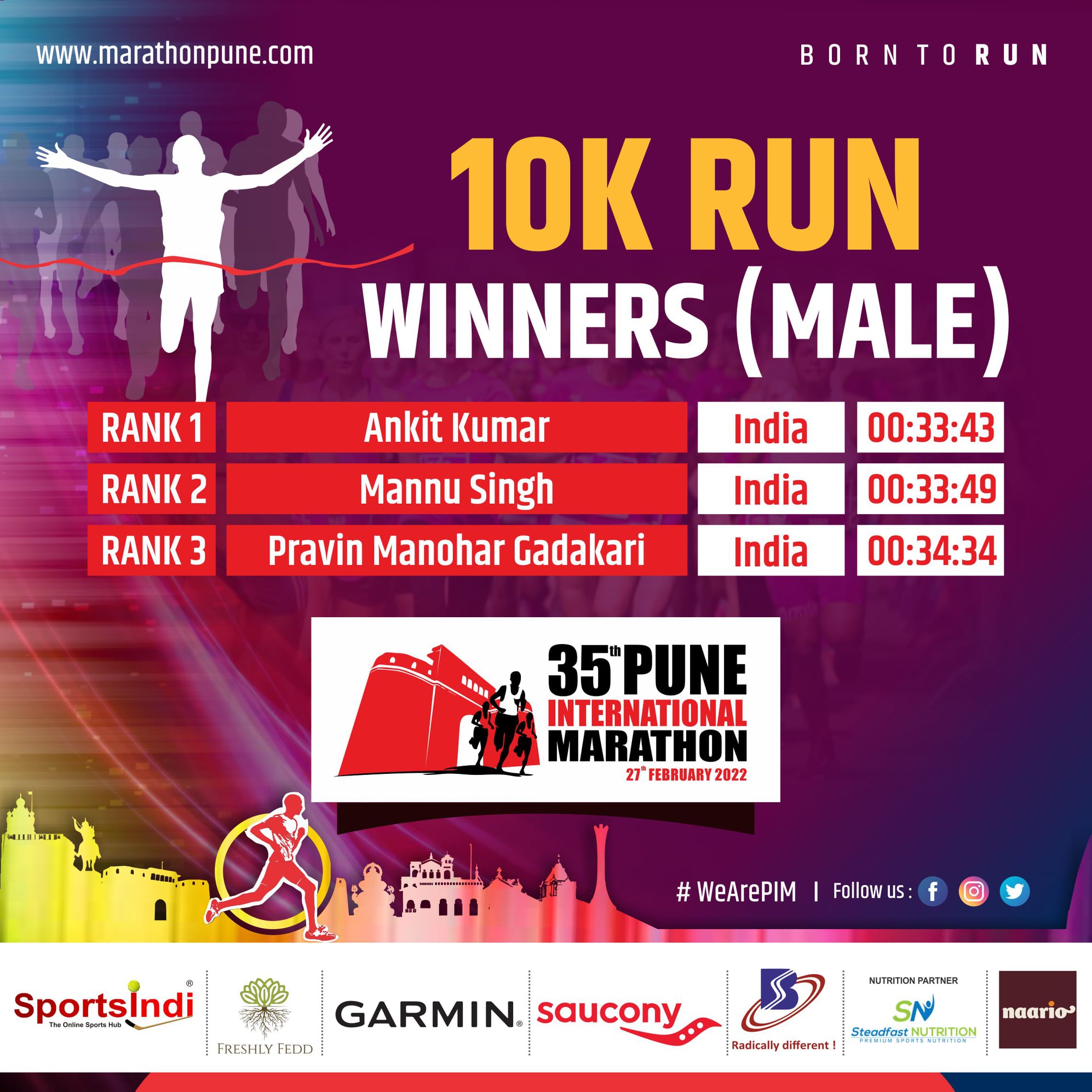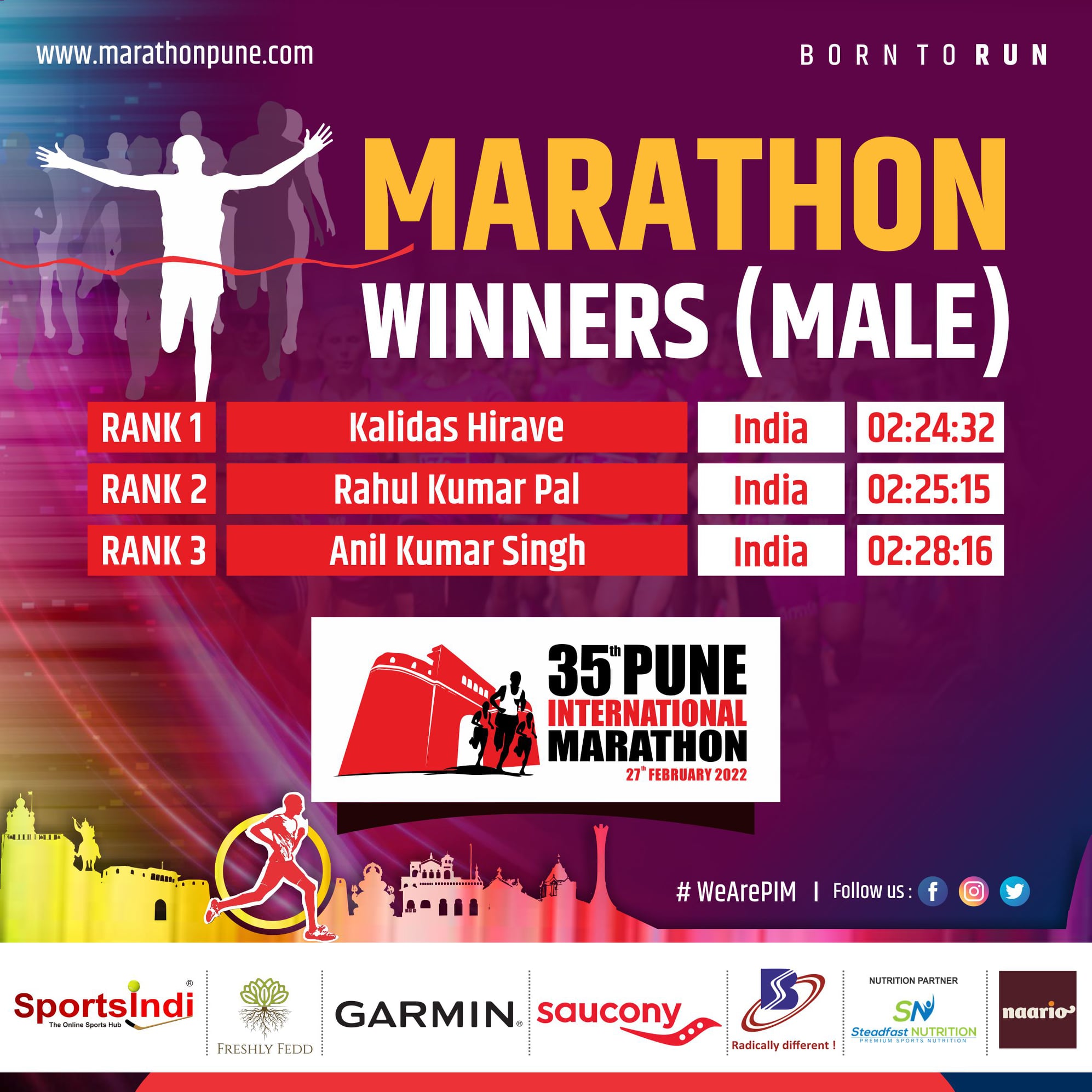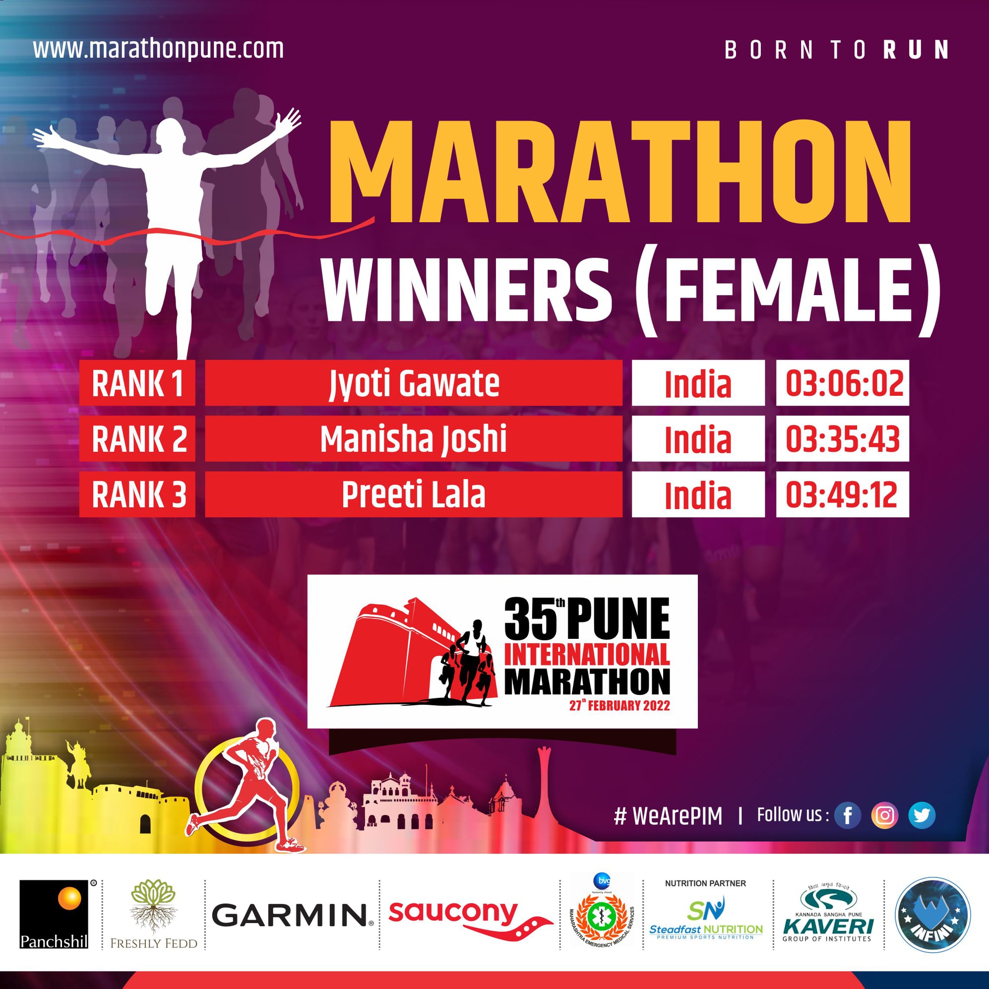 35th Pune International Marathon 2022 is India premium Marathon event, Since 1983, thousands of runners from all walks of life had taken part in the event. Pune International Marathon is now widely used as a platform to spread social message and to raise fund for charitable cause. Pune International Marathon route consist of city of Pune scenic and historic locations and thousands of spectators lining up the course to cheers runners. It is the most anticipated running festival of city of Pune.