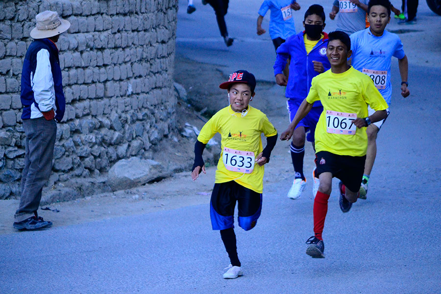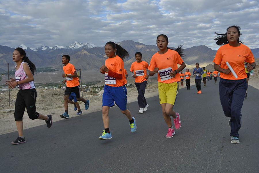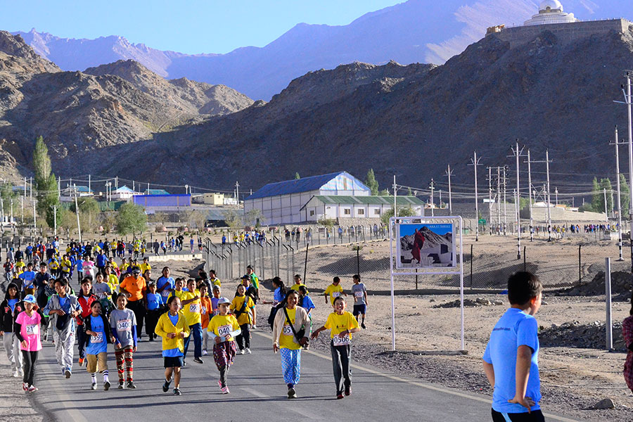 The 05 km run is the shortest race and has attracted the widest participation among runners across different age groups and genders. This race is particularly for fun and is open to everyone ranging from students to elders, armed forces and families stationed at Leh, and tourists who happen to be in Leh during the marathon time.