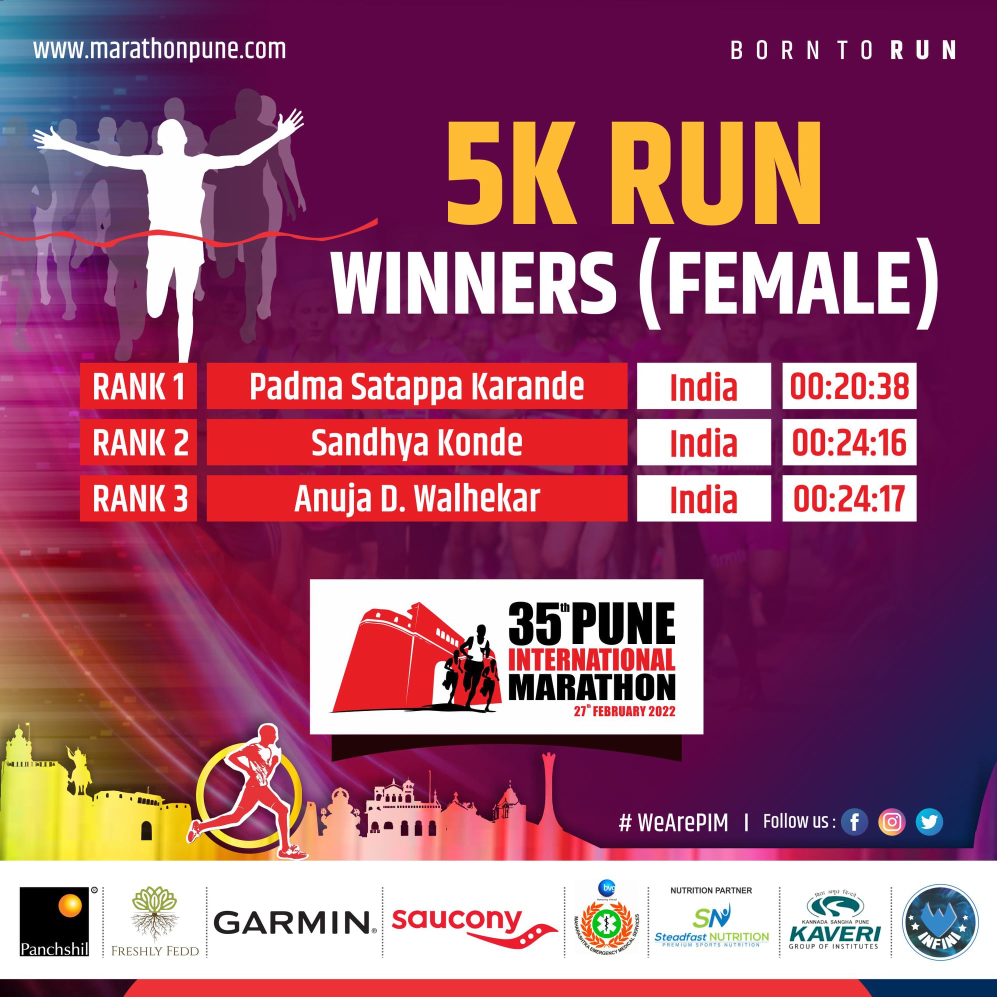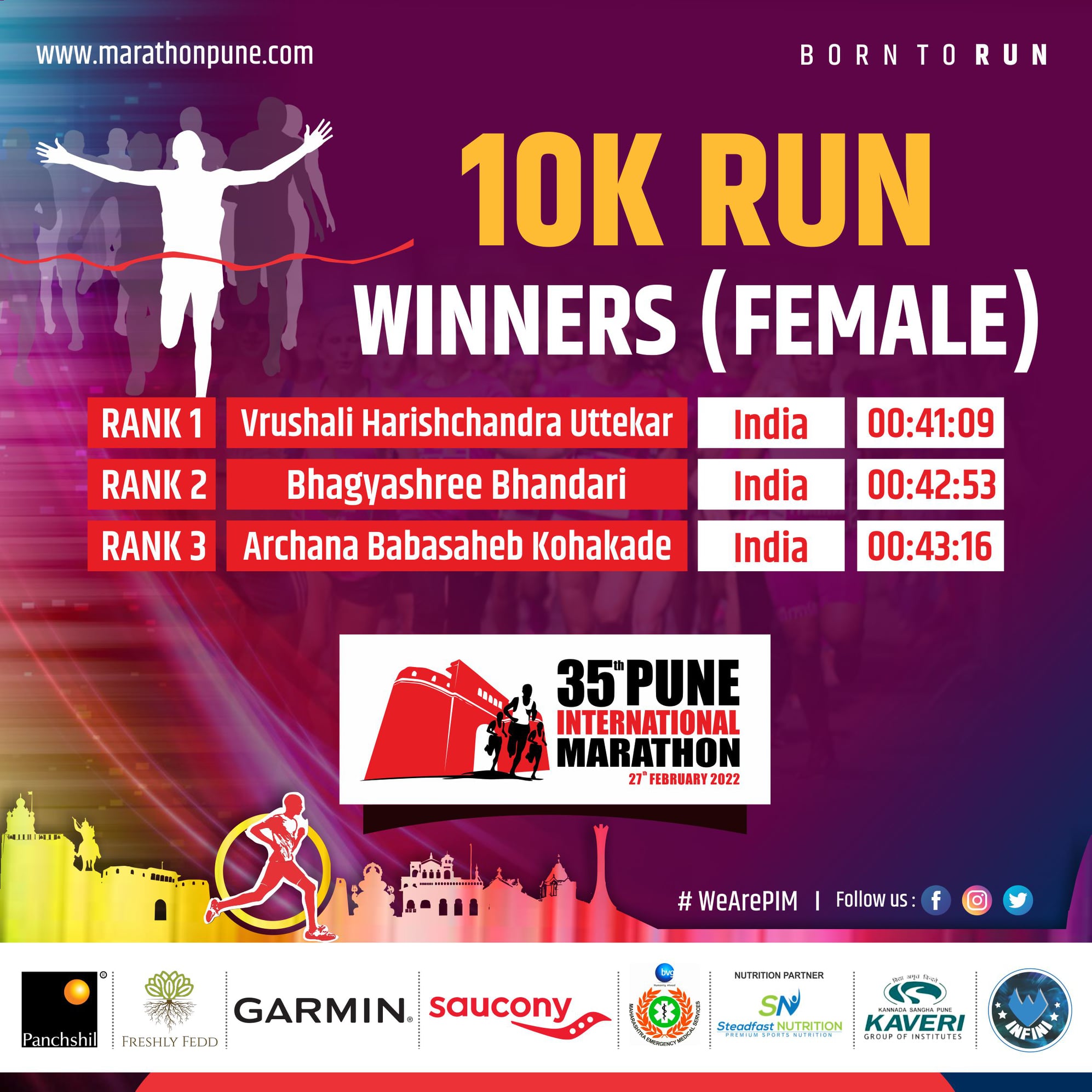 35th Pune International Marathon 2022 is India premium Marathon event, Since 1983, thousands of runners from all walks of life had taken part in the event. Pune International Marathon is now widely used as a platform to spread social message and to raise fund for charitable cause. Pune International Marathon route consist of city of Pune scenic and historic locations and thousands of spectators lining up the course to cheers runners. It is the most anticipated running festival of city of Pune.